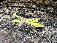 I decided to change the sheets & do a couple of loads of laundry. I had the flannel sheets on the bed and they alone are almost a full washer load. I got to the door of the bathrooms & a woman was loading the washer. She is in a truck camper next door, and moved her stuff to the dryer right on time. I started the sheets, then sat around outside reading. I caught a lousy photo of a praying mantis sitting on one of my tires. The iPhone insisted on focusing on the tire, not the insect. I should have dug out the real camera, but didn't.
