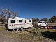 I'm in site 52, a pull through with full hookups that is just long enough for the truck & trailer. It is on gravel with a picnic table for $45.00 per night with a Good Sam discount. Very open - the place is essentially a parking lot with hookups, ie no shade. As usual, a fairly constant wind out of the west. I noticed it on the drive only getting 11.0MPG doing 65MPH. On interstates I usually do between 12 & 13.