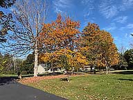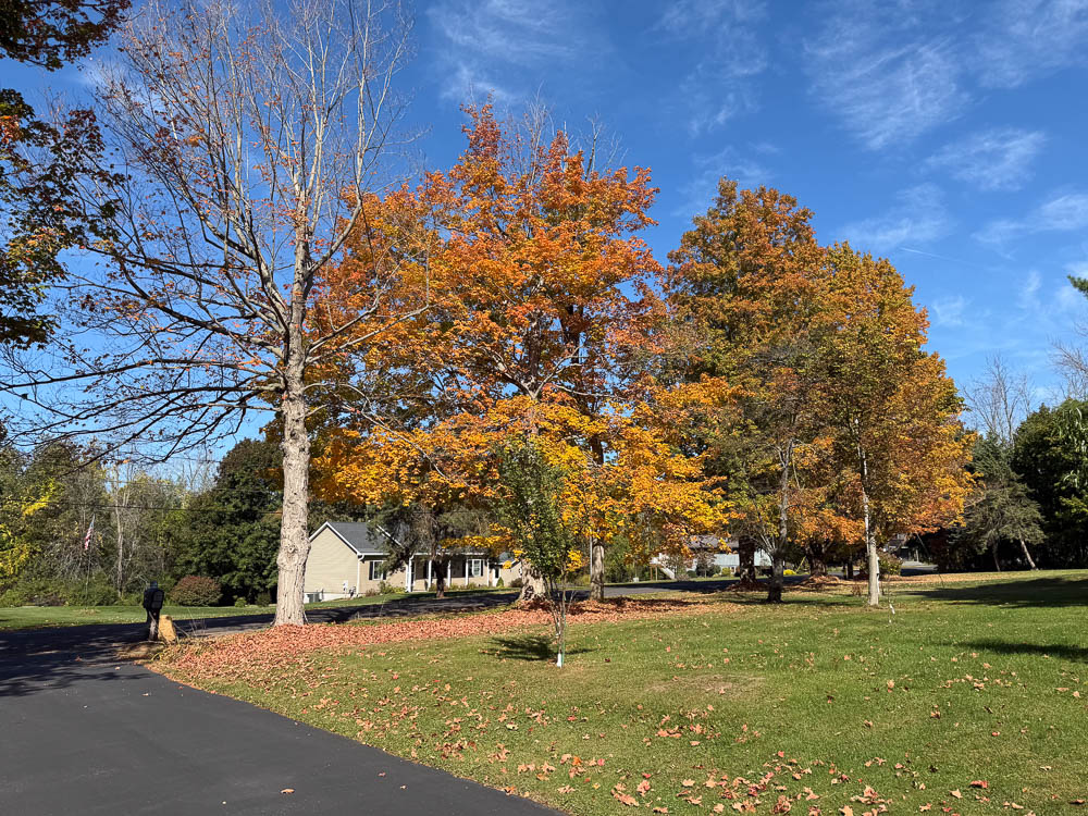 I've been mowing the leaves as they fall off the maples along the front. One is almost done, the other two are holding on.