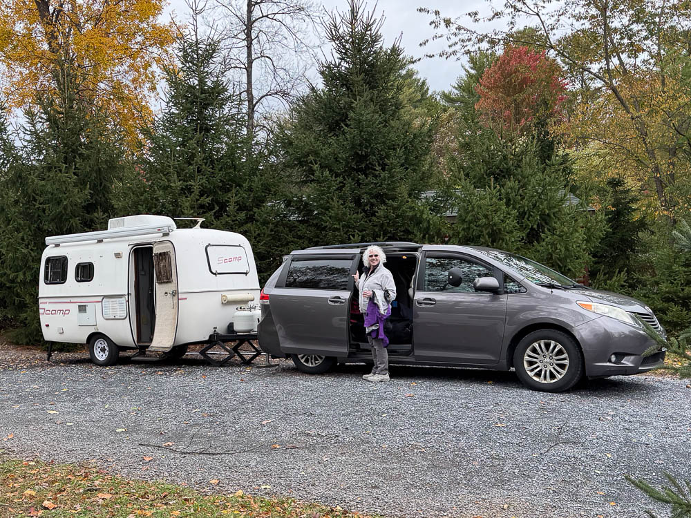 We arrived at Twin Grove RV Resort & Cottages around 1:30. Lots of rain on the trip from Binghamton, but not too heavy. It did get down to 48°F on the way, but here at Twin Grove it is 56F.