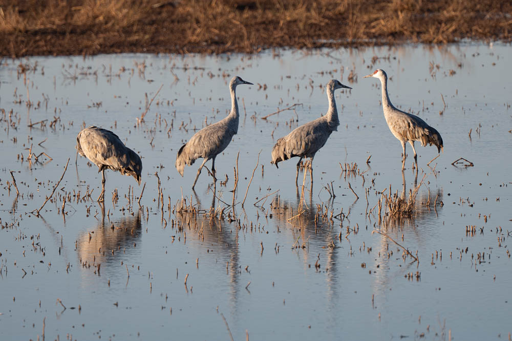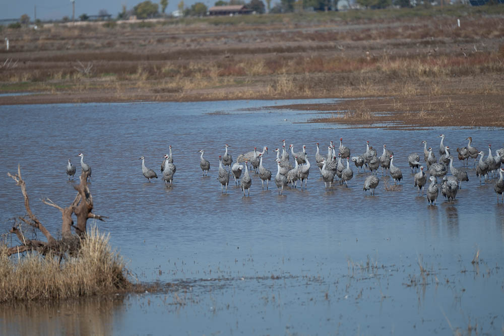 Around 1:00 I went for my morning walk, taking the Z8 with my old 80-400 Nikkor zoom. While much heavier than the 28-400, I feel it is a bit sharper. In any case, here are 4 more Sandhill Crane images. I also found part of the pond that has some white geese that I'm guessing are Snow Geese.