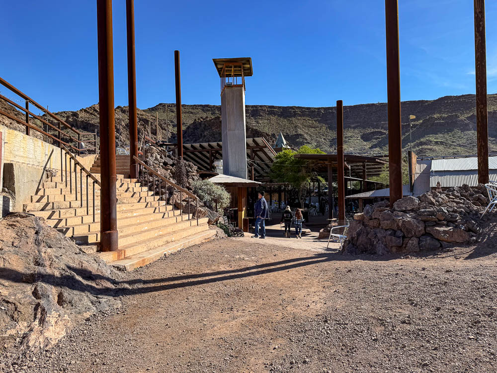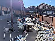 I spent the morning reading, then around 12:45 headed to Lorraine's truck & trailer. Tom & Anne spent the night next to Lorraine and the 4 of us headed to the Desert Bar in Lorraine's truck. The usual bumpy gravel/dirt washboarded road. Not as crowded as a couple of the times I've been there, but a live band and a short line for the food window. Had a Gyro for lunch that was large enough that it will also be dinner. I replaced my ink stained Desert Bar "T" shirt.
