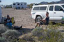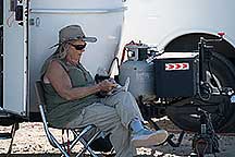 Back at the trailer I sat outside in what ever shade I could find. The trailer with the loud generator & dog left so it should be a bit quieter. A steady wind from the west keeps it cooler in the shade, but the strong sun heats up anything it hits. I have been sitting in my shaded chair with the trailer blocking the wind and it isn't too bad.