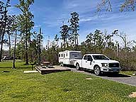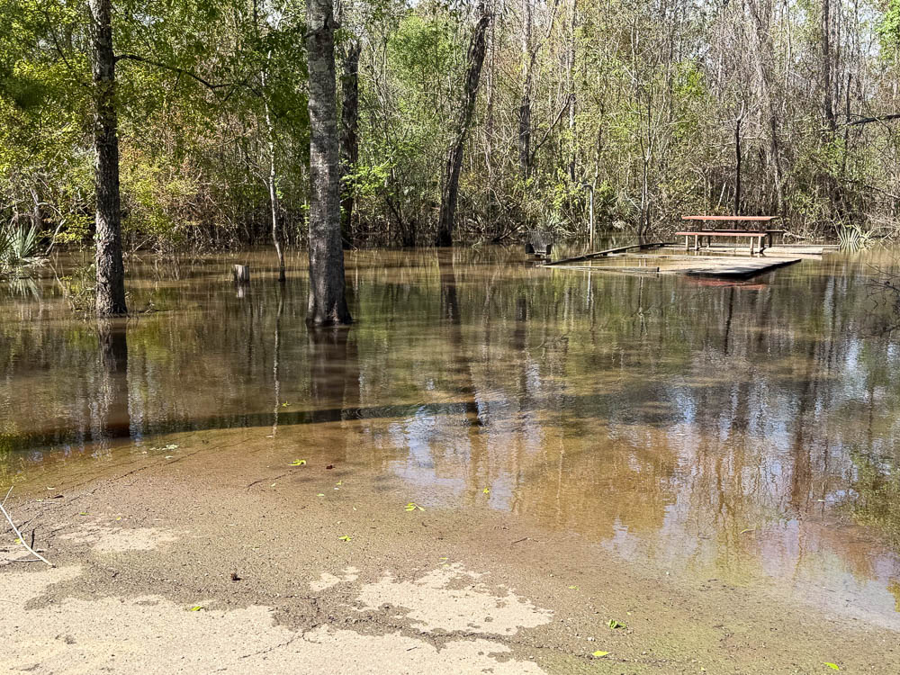 I reached Tickfaw State Park at 2:15, and was assigned site 8. I walked around the electric loop and some of the sites were underwater. The pavement at my original site (29) was dry, but looked like an island. Some were worse: