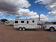 The owner of the Oasis asked me to call about 10 minutes before I arrived so I stopped at a rest center just outside of town & called. He met me and assigned me site 20, a full hook up pull through site on gravel for $25.00 per night. Nothing other than a spot for the trailer & the hookups, and close neighbors. Lots of traffic noise from I 10, as well as trains on the other side of the park. Not your ideal location, but all of the rest of the RV parks in town are along the same I 10 Business Loop and I'm only staying tonight. They do have a bathroom - a single room for each sex, the men's has a urinal, sink, toilet & shower. Very dark - the ceiling light is out.