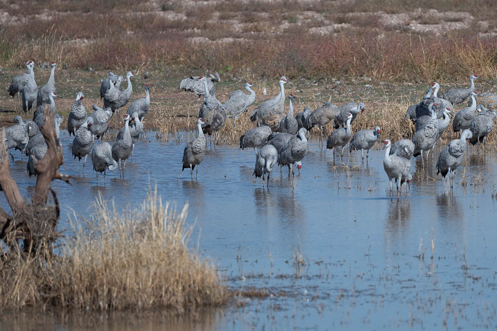 Around 1:00 I went for my morning walk, taking the Z8 with my old 80-400 Nikkor zoom. While much heavier than the 28-400, I feel it is a bit sharper. In any case, here are 4 more Sandhill Crane images. I also found part of the pond that has some white geese that I'm guessing are Snow Geese.