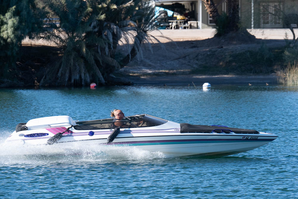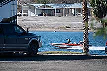 Back at the trailer I grabbed the camera and took a couple more hummingbird photos, and one of what my iBirds tells me is a Brewer's Blackbird, then a couple of photos of some of the boats traveling on the Colorado River. There is a seaplane that has landed (and taken off) twice since I've been here, but I haven't had the camera handy to get a photo. I also included a photo of the California side of the river.